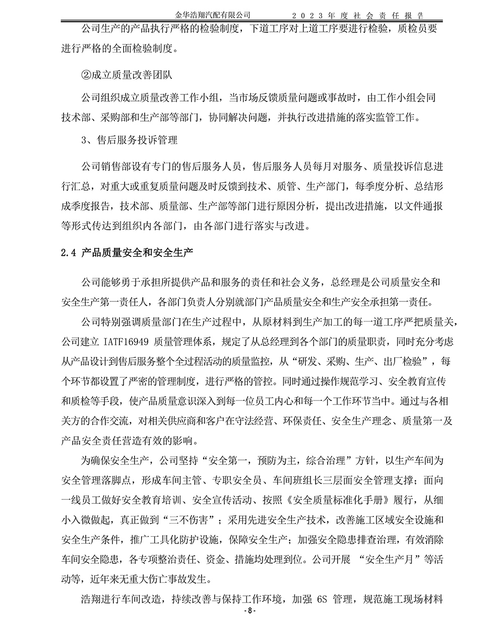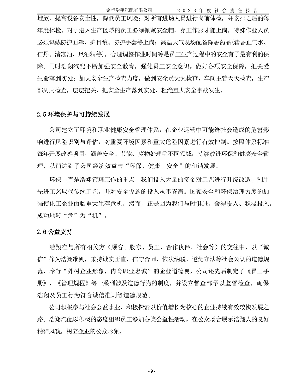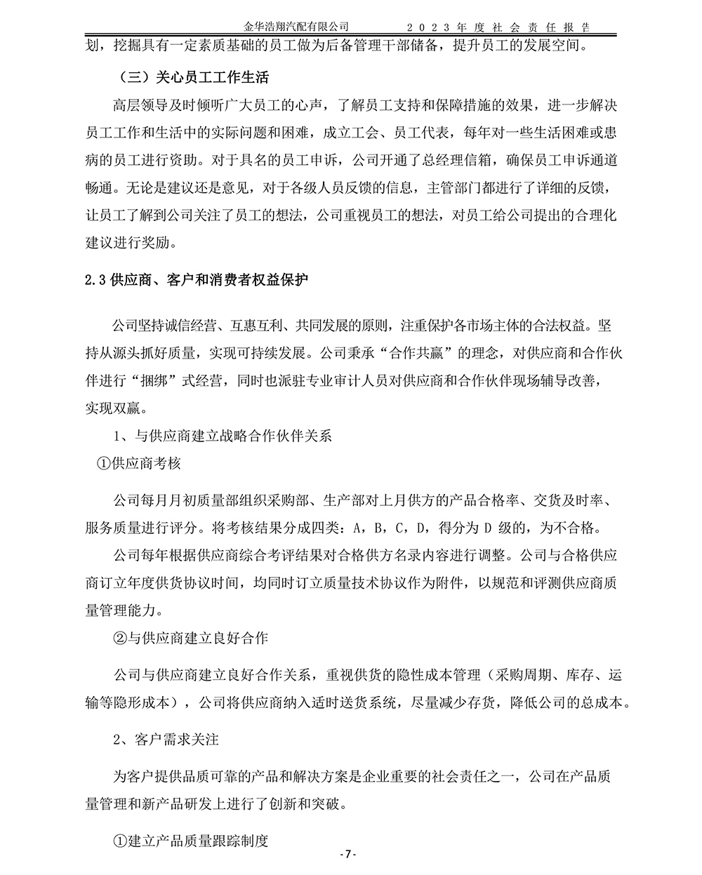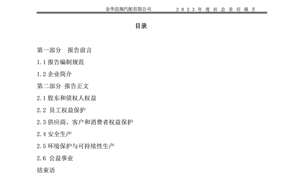 2023年度浩翔汽配社會(huì)責(zé)任報(bào)告